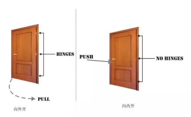 開門的方向決定了你的站位,舉個(gè)例子,如果門是向內(nèi)開的,推薦的做法是: