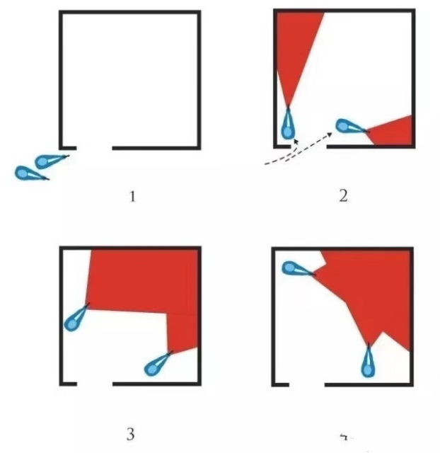 可是,如果房間的形狀是不對(duì)稱時(shí),推薦的戰(zhàn)術(shù)流程則變成了下面這樣:
