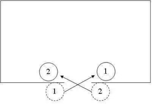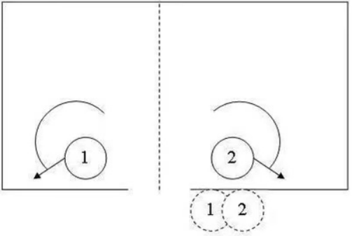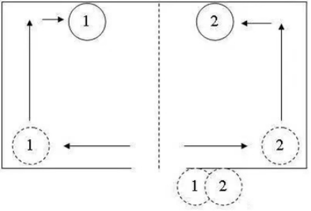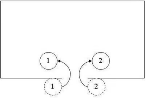房間形狀對(duì)戰(zhàn)術(shù)影響極大。舉個(gè)例子的,兩名戰(zhàn)士從同側(cè)進(jìn)入屋內(nèi)。當(dāng)房屋形狀是對(duì)稱時(shí),推薦的戰(zhàn)術(shù)流程如下: