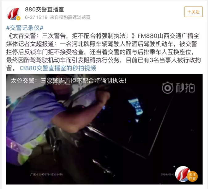 2.排除妨礙。警告無效的,經(jīng)口頭或其他方式請示辦案部門負責(zé)人批準??梢圆扇∑崎T、破窗等強制手段排除妨礙,要求行為人接受檢查。對于車內(nèi)正在發(fā)生危害公民人身安全或者公共安全行為的,現(xiàn)場民警可以直接采取強制手段排除妨礙。