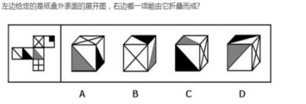 在行測題目中,我們經(jīng)常為立體圖形中的折紙盒題目發(fā)愁,今天給大家講解頂點法,解決折紙盒題目,不再舉步維艱!下面放一道簡單題目,旨在幫助大家理解頂點法。