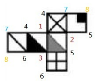 兩個8只連了兩個面,在最后的右下角標(biāo)上第三個8,此時每個數(shù)字都連接了三個面,標(biāo)齊正確。