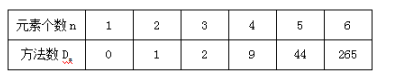 對于這道題目中涉及到的元素數(shù)也就是信封的個數(shù)我們用字母n來表示,而所要求得的方法數(shù)我們用字母Dn來表示,因為題干要求信與信封編號不能相同,由此我們判定這是一道錯位重排類型的題目。那么對于錯位重排問題我們只需要記住下邊這個表格,會從題干中找到錯位重排的元素個數(shù),這種問題就可以輕而易舉地做出來了。