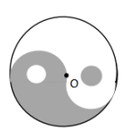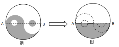 【例題2】如圖,太極八卦圖外部是以O(shè)點為圓心,6cm為半徑的圓,其內(nèi)部白色小圓與黑色小圓的圓心與大圓圓心在同一條直線上,且小圓直徑為2cm,求圖中陰影部分的面積?