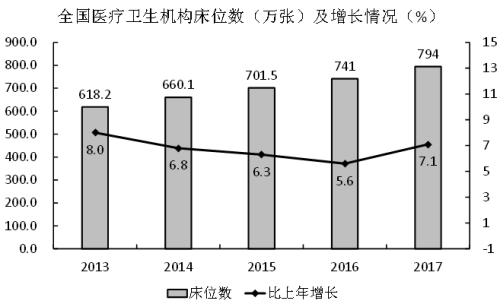 (2019山東)雖然2014-2016年間全國醫(yī)療衛(wèi)生機構(gòu)床位數(shù)增長速度持續(xù)下滑,但2016年床位數(shù)仍然比2014年增加了: