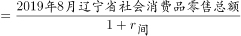 =2.65%+5.73%+2.65%*5.73%≈2.65%+5.73%=8.38%。定位表格材料可知2019年8月,遼寧省社會消費品零售總額為1280.7億元,根據(jù)基期計算公式可計算得2017年8月遼寧省社會消費品零售總額