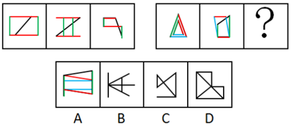 從四個(gè)圖中選出唯一的一項(xiàng),填入問(wèn)號(hào)處,使其呈現(xiàn)出一定的規(guī)律性。