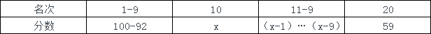 【點評】此題有兩個特點,第一涉及的名次較多,共有20人,如果20個名次全部構(gòu)造出來則過于浪費時間,故在解題過程中,分?jǐn)?shù)相連的名次可以列為一格。第二計算量較大,涉及到等差數(shù)列的求和以及多位數(shù)的加減法。建議考生們在解題過程中一定要掌握相應(yīng)的計算技巧,在此我們利用等差數(shù)列的中位數(shù)進(jìn)行求和便會大大提高我們的計算速度。