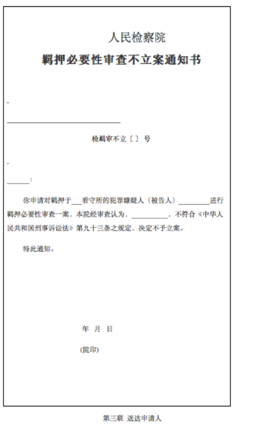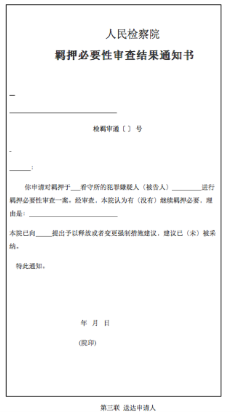 第五百七十六條規(guī)定:“辦案機(jī)關(guān)對應(yīng)的同級人民檢察院負(fù)責(zé)控告申訴檢察的部門或者負(fù)責(zé)案件管理的部門收到羈押必要性審查申請后,應(yīng)當(dāng)在當(dāng)日移送本院負(fù)責(zé)捕訴的部門。其他人民檢察院收到羈押必要性審查申請的,應(yīng)當(dāng)告知申請人向辦案機(jī)關(guān)對應(yīng)的同級人民檢察院提出申請,或者在二日以內(nèi)將申請材料移送辦案機(jī)關(guān)對應(yīng)的同級人民檢察院,并告知申請人?!?/span>