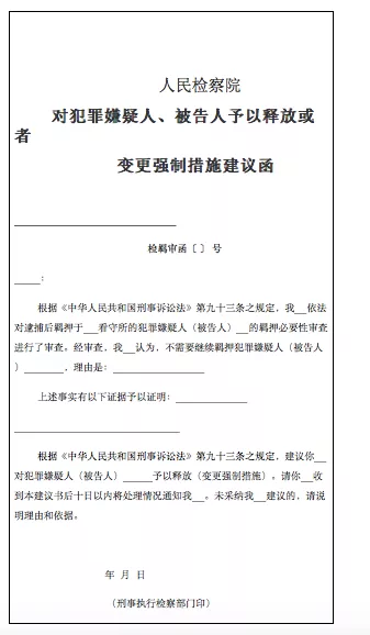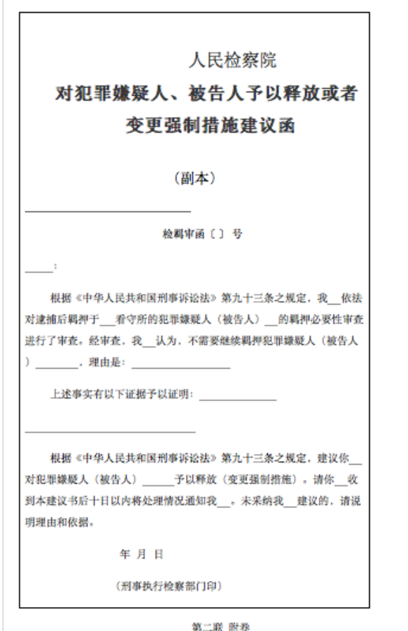 新《人民檢察院刑事訴訟規(guī)則》第五百七十五條規(guī)定:“負(fù)責(zé)捕訴的部門依法對偵查和審判階段的羈押必要性進(jìn)行審查。經(jīng)審查認(rèn)為不需要繼續(xù)羈押的,應(yīng)當(dāng)建議公安機(jī)關(guān)或者人民法院釋放犯罪嫌疑人、被告人或者變更強(qiáng)制措施。審查起訴階段,負(fù)責(zé)捕訴的部門經(jīng)審查認(rèn)為不需要繼續(xù)羈押的,應(yīng)當(dāng)直接釋放犯罪嫌疑人或者變更強(qiáng)制措施。負(fù)責(zé)刑事執(zhí)行檢察的部門收到有關(guān)材料或者發(fā)現(xiàn)不需要繼續(xù)羈押的,應(yīng)當(dāng)及時(shí)將有關(guān)材料和意見移送負(fù)責(zé)捕訴的部門。”