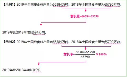 增長率:現(xiàn)期量較基期量變化的幅度,強(qiáng)調(diào)增長的快慢。常見表述為“增速”“增幅”“同比增長最快/最慢的是?、環(huán)比增長最快/最慢的是?”等。