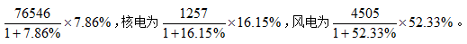例題:2011年,全國電廠發(fā)電設(shè)備裝機(jī)容量105576萬千瓦,同比增長9.25%。其中,水電23051萬千瓦,同比增長6.69%,占總發(fā)電設(shè)備裝機(jī)容量的比重為21.83%;火電76546萬千瓦,同比增長7.86%,占總發(fā)電設(shè)備裝機(jī)容量的比重為72.5%;核電1257萬千瓦,同比增長16.15%,占總發(fā)電設(shè)備裝機(jī)容量的比重為1.19%;風(fēng)電4505萬千瓦,同比增長52.33%,占總發(fā)電設(shè)備裝機(jī)容量的比重為4.27%。