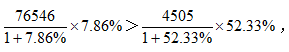 76546是4505的10多倍,52.33%是7.86%的6倍多,(1+52.33%)小于(1+7.86%)的1.5倍,所以