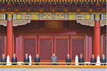 上午7時(shí)53分,在歡快的樂曲聲中,習(xí)近平等黨和國(guó)家領(lǐng)導(dǎo)人來到天安門城樓主席臺(tái),全場(chǎng)爆發(fā)出熱烈掌聲。