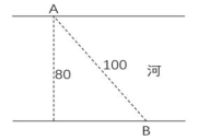 35、如右圖所示,一條河流的兩岸分別有A、B兩處景點(diǎn),河面寬80米,A與B的直線(xiàn)距離是100米。現(xiàn)需鋪設(shè)一條觀(guān)光棧道連接A與B。已知陸地棧道的鋪設(shè)費(fèi)用是0.1萬(wàn)元/米,河面棧道的鋪設(shè)費(fèi)用是0.125萬(wàn)元/米,則最少需要鋪設(shè)費(fèi)用:( )