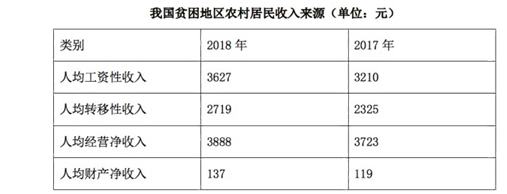 C.2018年,貧困地區(qū)農(nóng)村居民各來源的人均收入較上年均有提高