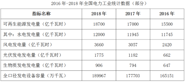 2018年,我國可再生能源發(fā)電量達(dá)1.87萬億千瓦時(shí),同比增長約1700億千瓦時(shí);可再生能源發(fā)電量占全年發(fā)電總量比重為26.7%,同比上升0.2個(gè)百分點(diǎn)。