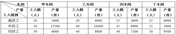 某機(jī)械加工企業(yè)下設(shè)四個生產(chǎn)車間生產(chǎn)加工同種類型和型號的產(chǎn)品,并以人均產(chǎn)量評價勞動生產(chǎn)率。