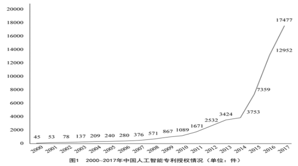 C、中國科學(xué)院僅2017年的人工智能專利授權(quán)量就接近2000至2004年5年全國授權(quán)量的總和