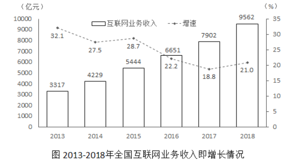 2018年全國互聯(lián)網(wǎng)業(yè)務(wù)收入9562億元,比上年增長21.0%。其中,廣東、上海、北京互聯(lián)網(wǎng)業(yè)務(wù)收入分別增長26.5%、20.0%和25.2%。2018年互聯(lián)網(wǎng)企業(yè)信息服務(wù)收入8594億元,比上年增長20.7%。其中,電子商務(wù)平臺收入3667億元,增長13.1%;網(wǎng)絡(luò)游戲業(yè)務(wù)收入1948億元,增長17.8%。2018年互聯(lián)網(wǎng)行業(yè)研發(fā)投入490億元,比上年增長19.0%。