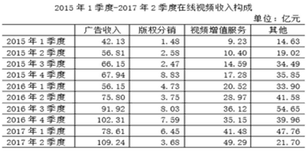 C.2017年2季度,在線視頻其他業(yè)務(wù)收入同比下降了50%以上