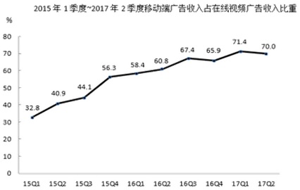 127、2017年2季度,在線視頻移動(dòng)端廣告收入環(huán)比增長(zhǎng)速度:( )