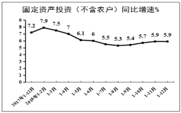 2018年全國固定資產(chǎn)投資(不含農(nóng)戶)63.56萬億元,比上年增長5.9%,增速比前三季度加快0.5個百分點。其中,民間投資39.41萬億元,增長8.7%,比上年加快2.7個百分點。分產(chǎn)業(yè)看,第一產(chǎn)業(yè)投資增長12.9%,比上年加快1.1個百分點;第二產(chǎn)業(yè)投資增長6.2%,加快3.0個百分點,其中制造業(yè)投資增長9.5%,加快4.7個百分點;第三產(chǎn)業(yè)投資增長5.5%,其中基礎(chǔ)設(shè)施投資增長3.8%。
