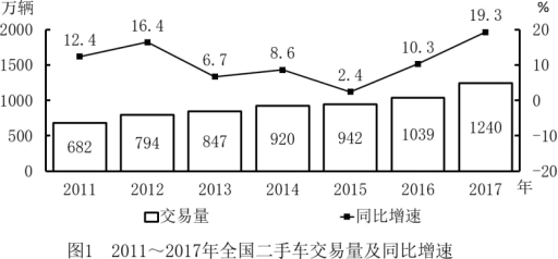 D.2011~2017年,全國二手車交易量同比增速低于10%的年份有4個