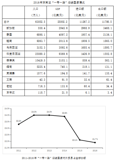 133.(單選題)2016年東南亞“一帶一路”沿線國家有幾個呈現(xiàn)貿(mào)易逆差(進(jìn)口額高于出口額):( )
