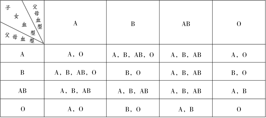 血型遺傳規(guī)律表