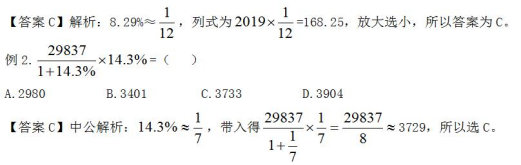 利用百分數(shù)和分數(shù)之間的轉(zhuǎn)化,將列式中的百分數(shù)近似轉(zhuǎn)化成一些特定分數(shù),從而達到簡化計算的目的,該方法稱為特征數(shù)字法。