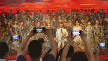 如今,在中共一大紀(jì)念館,高3米、寬7米的巨幅油畫(huà)《星火》吸引著參觀者駐足。畫(huà)面上,各地共產(chǎn)黨早期組織的50余名成員昂首闊步,意氣風(fēng)發(fā)?! ?/span>