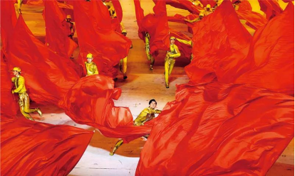 2021年6月28日晚,慶祝中國(guó)共產(chǎn)黨成立100周年文藝演出《偉大征程》在國(guó)家體育場(chǎng)盛大舉行。這是鼓樂(lè)歌舞《新的天地》。 新華社記者 黃敬文/攝
