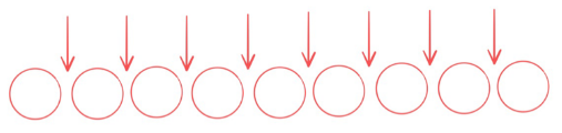 此時我們觀察到9個小球除了端頭兩個位置以外,會形成8個空位,也就是箭頭所標注的位置,如果我們?nèi)蓧K板插入這8個空中的其中任意兩個空位,都可以將這9個小球分成三份,并且滿足每一份至少有一個小球,再把這三份分給三個小朋友,就可以滿足每人至少一個球且球分完,所以8個空插兩塊板就共