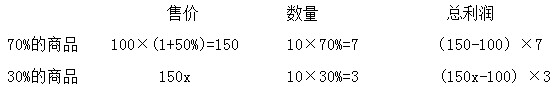 【答案】D。【解析】設(shè)每件成本為100元,商品一共有10件,打x折,則有: