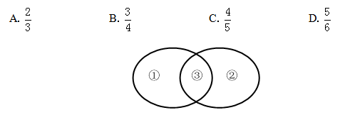 【答案】B【解析】利用文氏圖梳理題干信息,則區(qū)域表示只去了景點A的游客人數(shù),區(qū)域表示沒去A的游客人數(shù),區(qū)域表示兩個景點都去了的游客人數(shù)。由題意,可設(shè)區(qū)域①、②的人數(shù)為x人,則有2X=3X,即區(qū)域的人數(shù)為(2/3)X人,則所求為X+X/X+X+(2/3)X=3/4,選B。