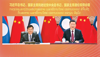12月3日,中共中央總書記、國家主席習近平在北京同老撾人民革命黨中央總書記、國家主席通倫舉行視頻會晤。