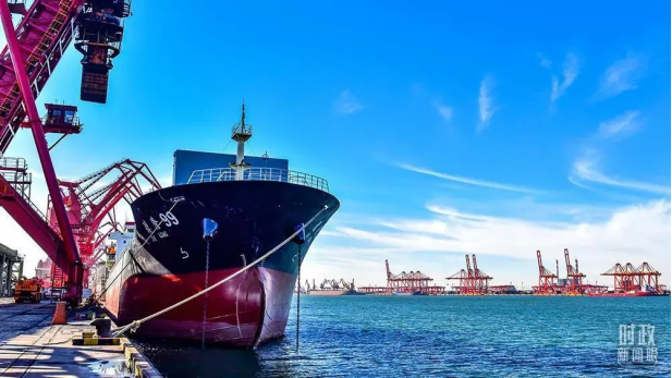 山東日照港。2021年10月,全球領(lǐng)先的順岸開放式全自動化集裝箱碼頭在這里建成啟用。