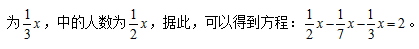列出方程之后大家會發(fā)現(xiàn)出現(xiàn)多個分?jǐn)?shù),求解過程中需要進(jìn)行通分,相當(dāng)于要多進(jìn)行一步計(jì)算,那么為了避免復(fù)雜計(jì)算,不妨結(jié)合多個分?jǐn)?shù)的分母,設(shè)總?cè)藬?shù)為42x(42為2、7、6的最小公倍數(shù)),那么得優(yōu)的人數(shù)為6x,得良的人數(shù)為14x,得中的人數(shù)為為21x,從而得到方程: