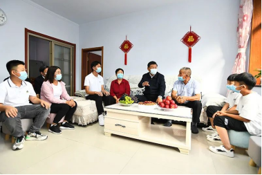 2021年9月13日至14日,中共中央總書記、國家主席、中央軍委主席習(xí)近平在陜西省榆林市考察。這是14日下午,習(xí)近平在綏德縣張家砭鎮(zhèn)郝家橋村,看望村民侯志榮一家。新華社記者李學(xué)仁/攝