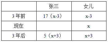 根據(jù)張三和女兒的年齡差不變,有17(x-3)-(x-3)=5(x+3)-(x+3),解得x=5,則女兒現(xiàn)在的年齡為5歲。選擇D選項(xiàng)。