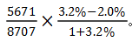 接下來分析式子中較簡單的部分3.2%-2.0%=1.2個百分點(diǎn),我們知道5671/8707計(jì)算結(jié)果小于1,那么與其相乘的結(jié)果小于1.2個百分點(diǎn);其次分母上的1.032大于1,計(jì)算的結(jié)果會更小,然后選擇數(shù)值比1.2小的B選項(xiàng)即可。