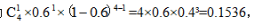 例1:根據(jù)天氣預(yù)報(bào),未來(lái)4天中每天下雨的概率均為0.6,則未來(lái)4天中僅有1天下雨的概率p為( )?
