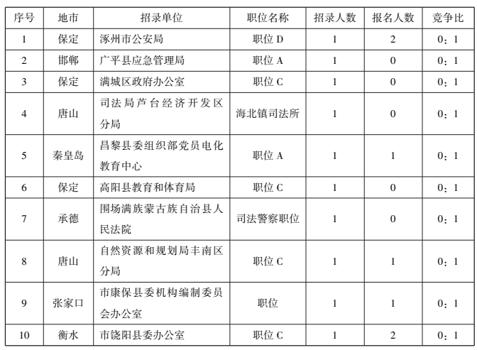 (2021年河北省考招錄競爭比最小的十大崗位)