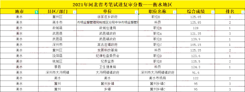 ?。?021省考衡水地區(qū)部分進面分數(shù))