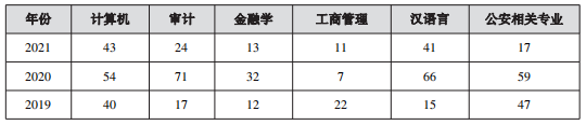 2019-2021年熱門專業(yè)招考人數(shù)統(tǒng)計表