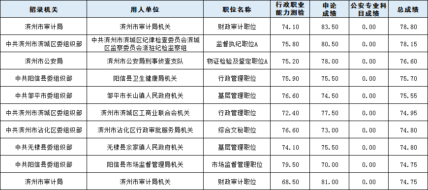 2021省考濱州進(jìn)面分?jǐn)?shù)前10崗位: