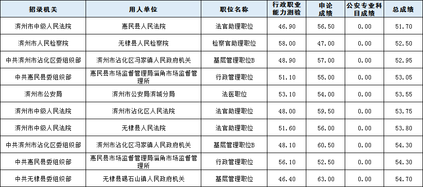 進(jìn)面筆試最低分51.7分,來自濱州市中級人民法院 惠民縣人民法院 法官助理職位。