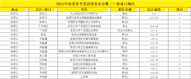2021年河北公務(wù)員考試張家口地區(qū)招錄 380 個(gè)崗位,共計(jì) 520 人,最低進(jìn)面分?jǐn)?shù)104.45,最高進(jìn)面分?jǐn)?shù)135.4,平均進(jìn)面分?jǐn)?shù)為118.4。