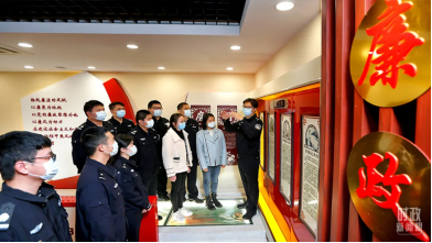 △2021年11月,江蘇南京港出入境邊防檢查站民警參觀廉政警示教育展廳。(圖/視覺中國(guó))